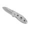 Couteau CRKT « SQUID », lame acier 8Cr14MoV à cran intérieur et à bouton double, manche 9 cm acier inox à trous, avec clip. Finition « stonewashed ».