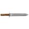 La lame à double tranchant de 27 cm supporte un manche en bois poncé huilé.