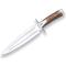El cuchillo de caza Joker Colmillo tiene una hoja con punta de acero inoxidable Mova 1.4116 con una longitud de hoja de 21,5 cm, un ancho de hoja de 4,5 cm y un grosor de 4,6 mm.
