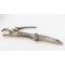 Rare couteau de fumeur du début du XVIIIè en fer forgé, lame de 6.5cm, ressort à cran forcé, cure pipe et pince. Fine gravure main de rinceaux. Longueur totale 15cm