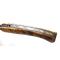Couteau de poche 1515 manche bois - Atelier 1515 collection " Primitive " par Manu Laplace Système liner-lock. Lame en acier inoxydable 14C28N avec gravure à l'eau forte motif "strate". Longueur totale : 201 mm Longueur du manche : 119 mm Longueur de lame : 83 mm Poids : 117 gr