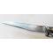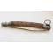 Beau couteau de Châtellerault époque début XXè sans usure particulière, lame acier non diminuée dans sa finition d'origine longue de 12,5cm, fines taches localisées. Léger jeu, ressort de fermeture bien ferme, anneau de déverrouillage de la mouche bien d'origine. Plaquettes cerf rivetées fer, mitres en fer décorée aux trait. Longueur totale ouvert 28,6cm, fermé 15,5cm.