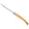 Le couteau de poche Effilé N°12 offre un design unique rehaussé par un chaleureux manche en olivier. Il est doté d'une lame poliglace de 12 cm en acier inoxydable. Simples et élégants, les couteaux Effilés en olivier existent en quatre tailles différentes, du N°08 au N°15. Ils deviendront rapidement des indispensables au quotidien, dans la poche ou le sac-à-dos. Ils sont également parfait pour lever les filets de poisson. Manche Olivier / Lame poliglace de 12 cm - Fabrication : France
