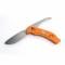Le manche en Proflex orange offre une excellente prise en main même par temps humide. Un œillet intégré permet l’ajout d’une dragonne pour sécuriser le couteau lors des manipulations. Sa couleur vive évite de le perdre en milieu naturel.