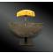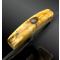 Poignée en forme de T, sculptée dans une section d’ivoire marin à patine miel, dont la lame, en acier à tranchant arrondi, est assemblée à l’aide de trois rivets.