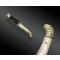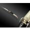 Lame légèrement courbe, en acier, à un tranchant et quatre pans ; à cran d’arrêt et déblocage par pompe.