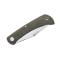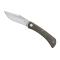 Couteau FOX « LIBAR », lame Clip-point acier M390 Bohler satiné à cran « slip joint », manche 8,5 cm micarta vert/marron, avec étui cuir noir.