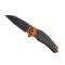 Couteau FOX « METAMORPHOSIS », lame acier M390 Bohler avec système d'ouverture « Finger Safe », manche 12 cm aluminium anodisé noir, avec clip. Revêtement PVD noir. Mitre et entretoise aluminium anodisé orange.