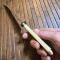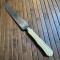Manche en os légèrement sculpté, virole en maillechorts, lame poinçonné Acier Fondu Garanti quelques légère marques d'oxydation.