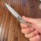 Couteau de ville mais aussi fidèle compagnon des randonneurs, ce modèle a été conçu pour être agrafé dans la poche d'une chemise, glissé directement dans un sac ou dans la poche d'un pantalon (mais aussi dans un étui en cuir classique). Cet usage implique un couteau de petite taille extra plat, ultra léger et possédant une agrafe de type stylo, celle-ci pouvant également servir de pince à billet.
