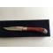 Couteau fabriqué en édition limitée pour les 75 ans de la fabrique en 1994 . Système à cran d'arrêt à pompe, manche composé de litres en maillechort et plaquettes en bois, manche forgé et ressort guilloché, lame en acier inoxydable portant le numéro 0377