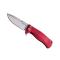 Couteau LIONSTEEL « SR22 », lame acier Sleipner satiné avec « flipper » et cran intérieur, manche monobloc SOLID® 10 cm aluminium rouge avec clip réversible et pic brise-vitre en bout.