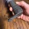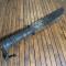 Manche à empilement de rondelles de cuir , pommeau en fer forgé à la médiévale (jeu), lame forgée au marteau avec poincon de forgerons et marquage PORTALIER VAR À PIGNANS .