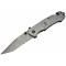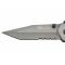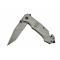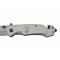 Couteau pliant avec lame en acier 3Cr13 noir et manche en acier inoxydable. Incrustation tête de mort sur le manche. Lame tanto en partie dentelée. Ouverture assistée.