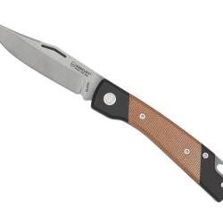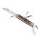 Couteau « MERCURY », 6 pièces inox (lame, fourchette, tire-bouchon, décapsuleur avec tournevis plat, ouvre-boîte et poinçon alésoir avec chas d'aiguille), manche 10 cm bois de cerf, avec anneau.