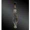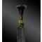 La lame en fer à fort élargissement, présente un étranglement à vingt-six centimètres du manche et se termine en largeur, arrondie et ajourée.