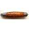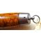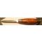 SUPERBE COUTEAU SUEDOIS - LAME DE FORME YATAGAN , NON USEE - PLATINES EN LAITON MARQUEE DU FABRICANT - FUT EN LOUPE DE BOULEAU AVEC TRES BELLE PATINE ET GARNI DE 2 VIROLES FIXES EN ACIER CARBONE - ANNEAU PASSE LACET AU CUL