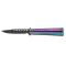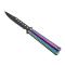 Couteau papillon THIRD, lame noire à trous acier inox 420, manche 13 cm acier inox décor « arc-en-ciel ».