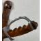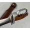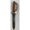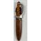 Lame 2 tables au tranchant important, sa mission principale était de couper les cordes du parachute rapidement si besoin, manche enveloppant en métal blanc, manche en bois. Couteau rare et légendaire. Longueur totale sans fourreau 33cm, bon état général.