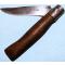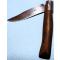 Modèle ancien (années 1940 à 1950 ?) de la collection de notre Père qui avait un grand nombre de modèles pour la cuisine, la randonnée, les bivouacs en montagne…, ce couteau de poche est en bon état général avec quelques traces superficielles et un petit trou dans le bois près de la virole. La main couronnée est en partie effacée.