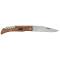 Couteau pliant disposant d'une lame en acier inoxydable de 9,5 cm, idéal pour la découpe de la viande ou de la charcuterie, monté sur un manche en bois platane avec gravure d'un sanglier. Dans la continuité de la base de la lame, un tire-bouchon fait de ce couteau un outil multifonction qui saura vous accompagner pendant vos pique-niques, randonnées ou repas à domicile.