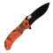 Couteau pliable impression camo orange sur le manche ergonomique.