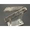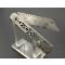 Superbe et rare couteau pliant du début du début du XVIIIè d'origine catalane en fer ajouré de motifs géométrique, croix cathare, étoiles et croix chrétienne, bordures moulurées. Lame en acier carbone de de 11cm, dos et ressort à cran forcé sculptés de vagues en suite, très léger jeu, rivets fer. Longueur totale déplié 23.8cm