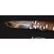 Platine acier Z40C13, plaquettes démontables en banksia stabilisé blanc. Dos guilloché, intercalaires rouges, longueur 120mm. Lanière en cuir noir.