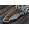 L’acier damas utilisé est constitué de plusieurs couches et a été plié avec deux types d'acier (1095 et 15N25) plusieurs fois afin d’obtenir une pièce de qualité de 150 à 250 couches.