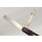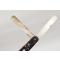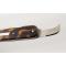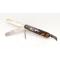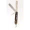 Beau couteau pliant de poche à quatre pièces, lame en fer, lame en argent poinçonnée, pointe et petite lame, côtes en écaille incrustées d'une urne fleurie en nacre d'un côté, une plaque rectangulaire de l'autre, platines en laiton guillochée, ressort à cran forcé, aucun jeu à l'ouverture. Lames sans usure, extrémités arrondies, longues de 7.5cm