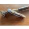 Couteau de bon aspect, mais très dur a refermer et plaquettes de bois fissurées au niveau de fixation par le rivets.