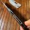 L'horreur quoi ... Autre chose d'important , dès que vous ouvrez et refermez une dizaine de fois le couteau , la vis de pivot se desserre , et la lame prend du jeu horizontal ( droite et gauche ) . Ressort trop dur et trop puissant pour un si petit couteau ! Bouton d'ouverture mal pensé et minuscule , action graveleuse à l'ouverture et fermeture , le bouton ne s'actionne jamais de la même façon , donc de nombreuses ouvertures de ratées et la lame reste non verrouillée après ouverture 5 fois sur 10 !! Ce qui est très dangereux , et dans une situation critique celà peut vite devenir dangereux pour son utilisateur . L'action du bouton est tout aussi graveleuse que l'ouverture de la lame , quand vous appuyez sur le bouton d'ouverture , vous sentez le ressort qui se plie et crisse un maximum lorsque vous le sollicitez . Bref à part une lame de qualité , le mécanisme est vraiment médiocre . Ce couteau ne vaut pas du tout l'argent payé pour , celà ne vaut même pas 100 euros non plus , c'est de l'argent jeté par les fenêtres , même payé à 130 euros chez CrazySale , celà ne vaut pas la peine . Passez votre chemin , car vous aller payer chère uniquement parce que c'est une collaboration Chaves , mais la qualité Chaves USA n'est pas présente sur ce mini Redencion ( j'ai 3 chaves USA ) ! Me reste plus qu'à le renvoyer à son vendeur . Je déconseille cet achat fortement .