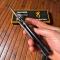 Une bonne prise en main, une lame relativement épaisse et surtout pas déçu de la petite imitation carbone bleue qui reste discrète finalement. Je suis très satisfait de la qualité.