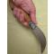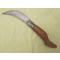 Modèle de couteau-serpette pliant utilisé pour diverses tâches agricoles en Anatolie. Les lames dentelées seraient destinées à la récolte du pavot. Fabrication artisanale, sans marquages, avec manche en bois et un renfort métallique à l'articulation avec la lame. Ni ressort ni cran d'arrêt. Pas très courant, sauf en version industrielle actuelle.