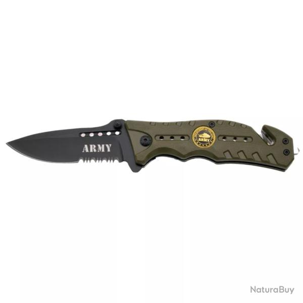 Couteau pliant tactique Third motif Army vert, lame avec dents