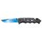 Couteau de poche Third à ouverture assistée avec manche en aluminium noir avec trous et tête de mort, lame bleue en acier inoxydable.