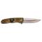 Couteau pliant Third à ouverture assistée, manche en aluminium avec apprêt damasquiné 3D et loup au centre, décor double face, lame en acier 420 de 9 cm.