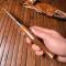 Lame 13 cm en acier 3CR13 finition satinée avec grip de pouce taillé au dos de la lame .