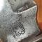 Manche en rondelles de cuir, lame Bowie dos à dents de scie. Sans Fourreau. Lame au poinçon Tête de Roi.