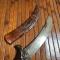 Manche bois un éclat , lame acier à nettoyer dans son fourreau en cuir épais décoré au trait.