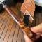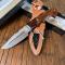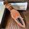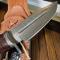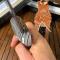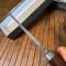 Lame de 12,3 cm Damas forgé mains, grip de pouce taillé au dos de la lame, gorge centrale et garde également en acier forgé Damas.