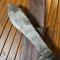 Poignard en bon état, plaquettes en bois quadrillé sans accident ni usure prononcé, belle lame légère taches , avec sont fourreau en cuir complet en bon état.