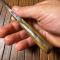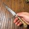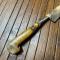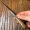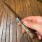 Manche en corne blonde riveté, lame typique à double courbure bien tranchante, quelques marques Legé coup.