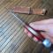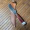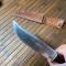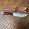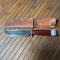 Belle état, manche bois , pommeau aluminium, lame à simple tranchant scie au dos , Avec son étuis en cuir.
