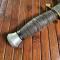 Manche à rondelles de cuir jeu , pommeau apriori pas visé à fond . Lame assez propre pas oxydé marquage bien net . Fourreau de ceinture en cuir une pression à refixer.