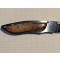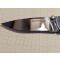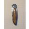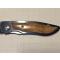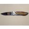 La lame a la partie fonctionnelle rapportée ce qui fait une trempe partielle au tranchant exceptionnel. Les deux platines sont en acier , surmontées de plaquettes que je pense en bruyère. Le poids du couteau est de 70 grammes.