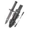 Manche en fibre et lame en acier inoxydable, aiguiseur, boussole et silex avec sifflet.
