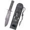 Couteau tactique "TERMINATOR" avec lame en acier finition pierre de 22 cm, manche caoutchouté noir, avec étui en nylon noir et pierre à aiguiser.