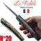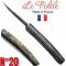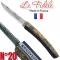La Manufacture Le Fidèle a sélectionné les plus beaux bois pour réaliser ses couteaux en plein manche ou en assemblage bi-matière avec un bois diffférent pour la mitre et le manche.