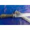 Lame de 180 mm avec petite gouttière sur chaque face, un seul tranchant légèrement bombé, incrustation en crosse près de la pointe. Traces de manipulations et de nettoyage "viril".